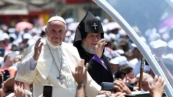 Десятки тысяч верующих приветствуют Папу Франциска на центральной площади армянской столицы.